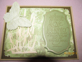 My friend Maggi gave me a spellbinders die called 'Cattails' in December. It is a wonderful die, but a little bit of a pain in the neck to use. The piece has some very fine/narrow stems that are tricky to cut and then release from the die. I found that using wax paper along with the paper being die cut helps... also running the die through my cuttlebug multiple times makes it easier to get a clean cut and a good release.